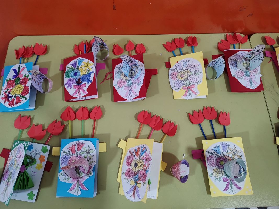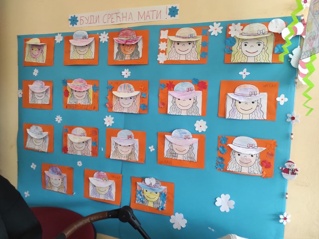 Као и сваке године, традиционално, предшколци су припремили приредбу за своје драге маме, тете, баке, поводом Дана жена. Том приликом, деца су припремила пригодне поклоне у виду цветних честитки са ликовима својих мајки и ваза са цвећем. Направили смо и 3д моделе од папира на којима се види како маме грле своју децу. Поклоне су деца предала пред почетак приредбе и измамила најтоплије осмехе на њиховим уснама. Право одушевљење су деца изазавала када су отпевала и изрецитовала песмице које су посвећене љубави и поштовању према свим драгим женама из дечјег окружења. Наслови које су родитељи могли да чују су, између осталих: „Буди срећна, мати“, „Писмо мајци“, „Очи моје мајке“, „Стара бака“, „Најлепша реч“…