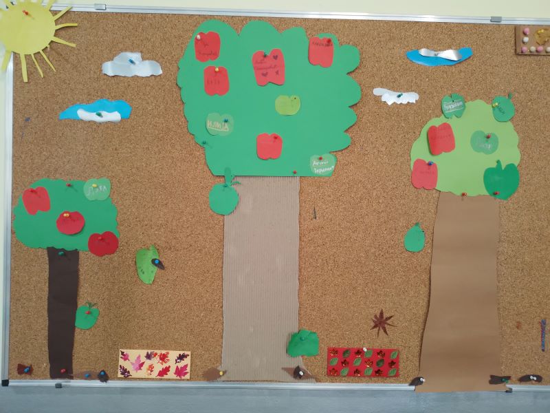Наиме, ученици су од хамер папира направили стабла на којима се налазе зелене и црвене јабуке. На зеленим јабукама су имена дечака, а на црвеним имена девојчица овог одељења.