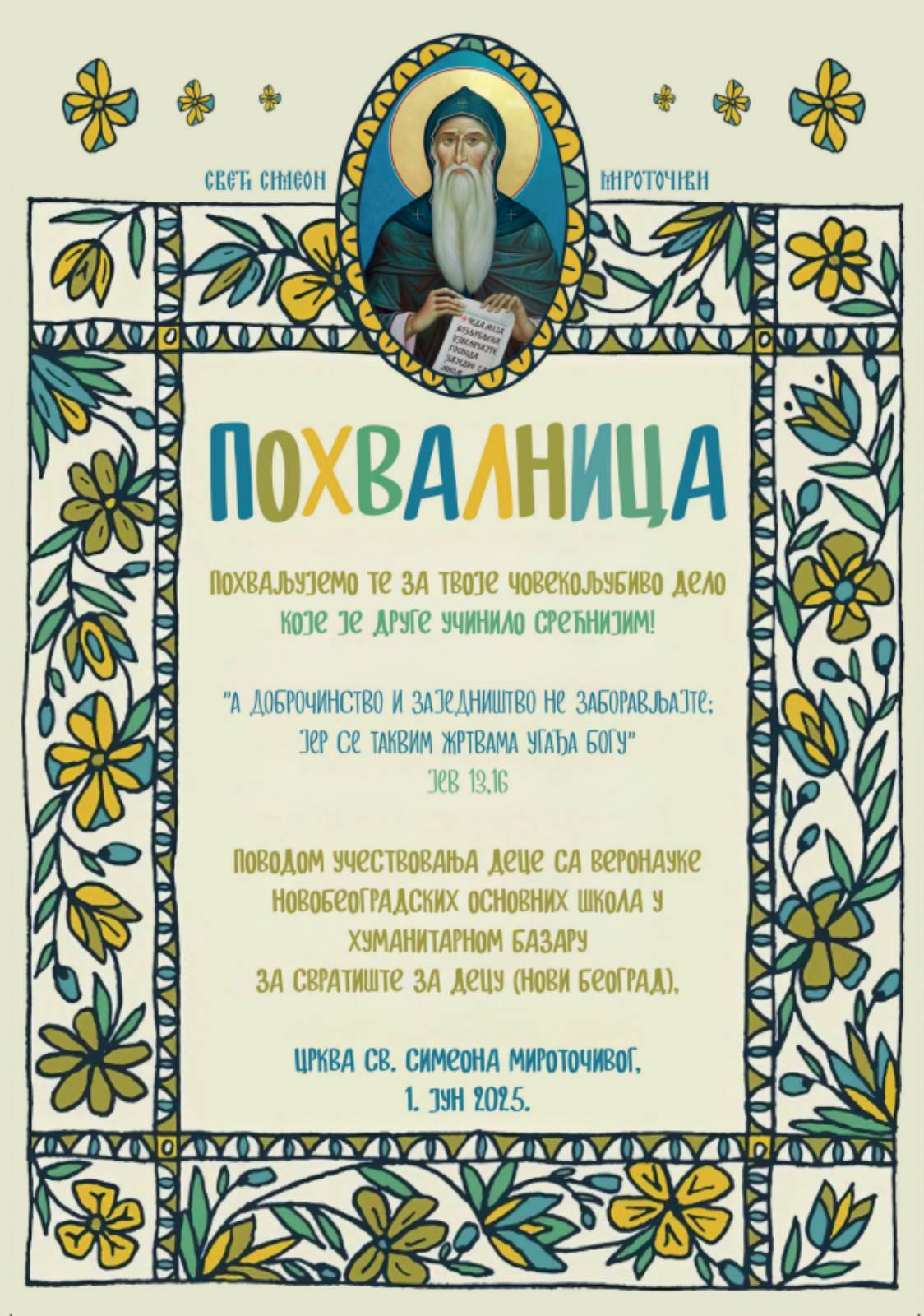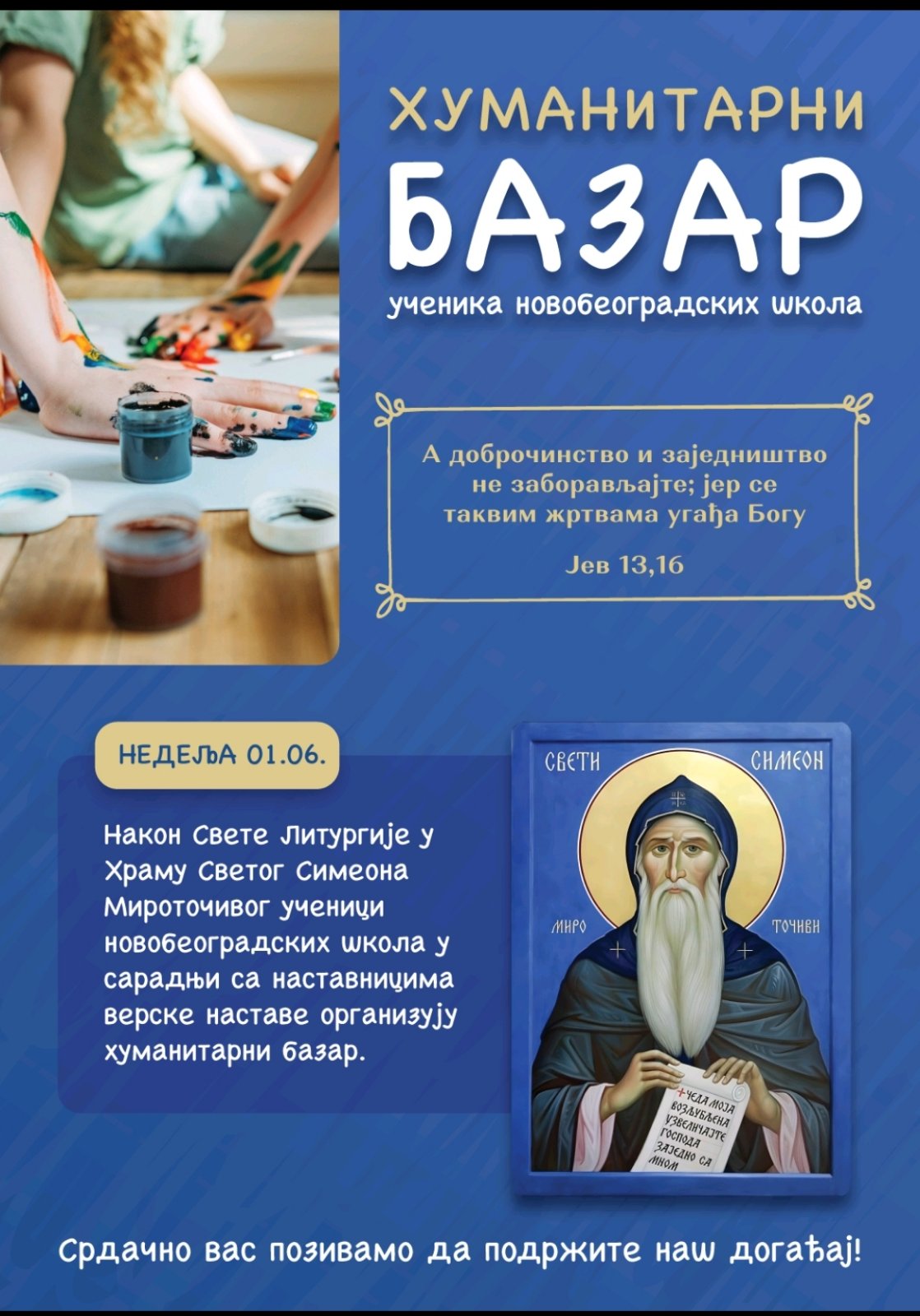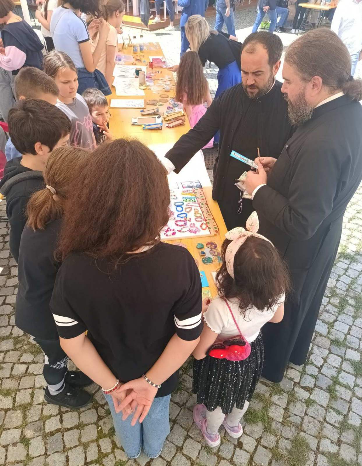 Вести 08/09/2025 Учешће на добротворном базару Учешће на добротворном базару, ученици и наставнице веронауке, Љиљана Љуштина и Дамјана Петковић fb tw lnkd pin