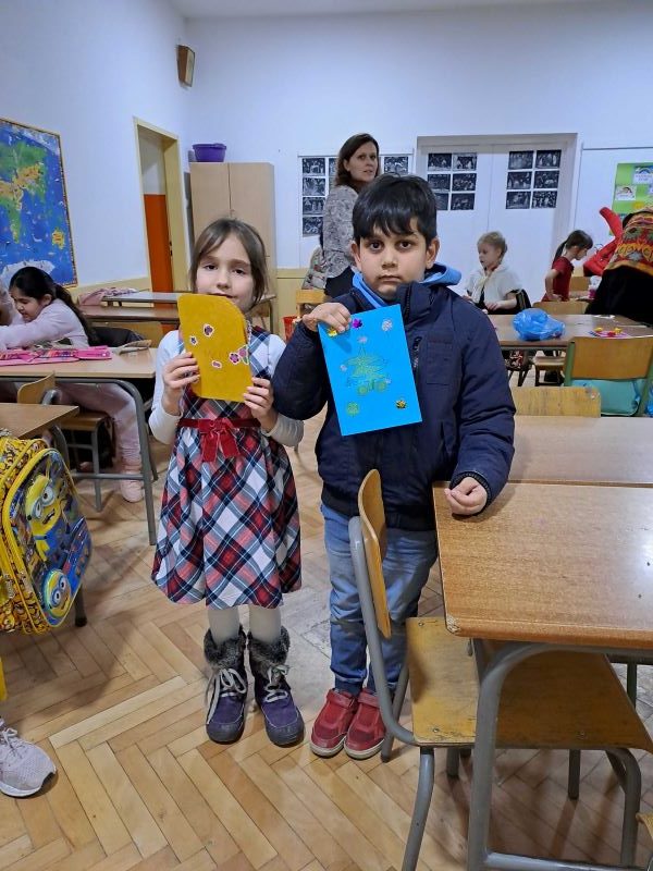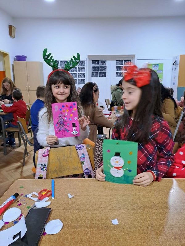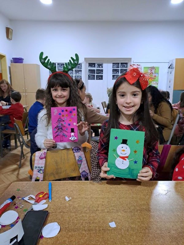 Одржали смо креативну радионицу у сарадњи са родитељима. Правили смо Новогодишње честитке које ће деца поклонити или послати својим најмилијима. Од материјала смо користили налепнице, незаобилазне шљокице и цирконе, картоне у боји, лепак, маказице…Деца су се упознала са традицијом слања честитки за време празника и провела креативно време са својим родитељима.