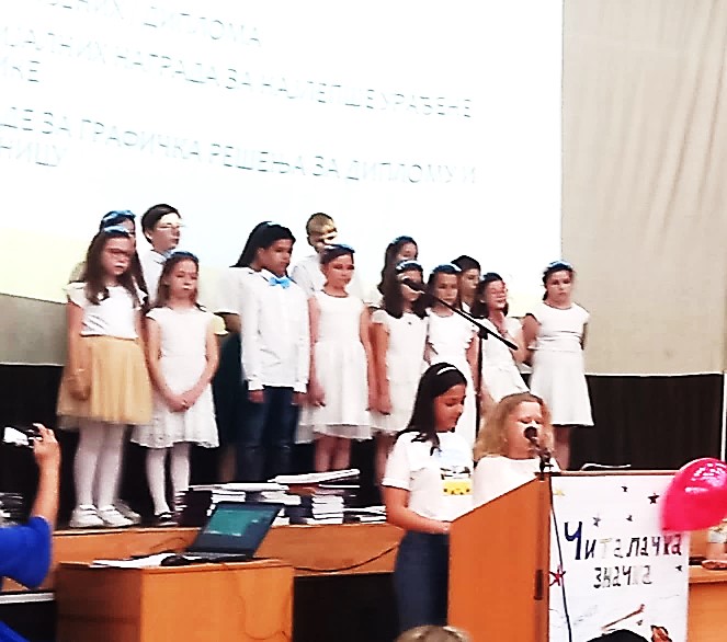 Вести 02/06/2024 58.Читалачка значка додела награда 19 новобеградских школа- учествовало 2129 ученика, награђено 744.Учешће наше школе је: 305 учесника , 89 награђених.Завршна свечаност (додела награда и захвалница) је одржана 29. маја.Програм су водиле наше: Лара Антонијевић 5/1 и Тијана Старовић 5/1У програму су учествовали и наши првачићи: Доротеја Милошевић 1/3 и Алекса Мирковић 1/3 који су рецитовали песме Ј. Ј. Змаја. fb tw lnkd pin