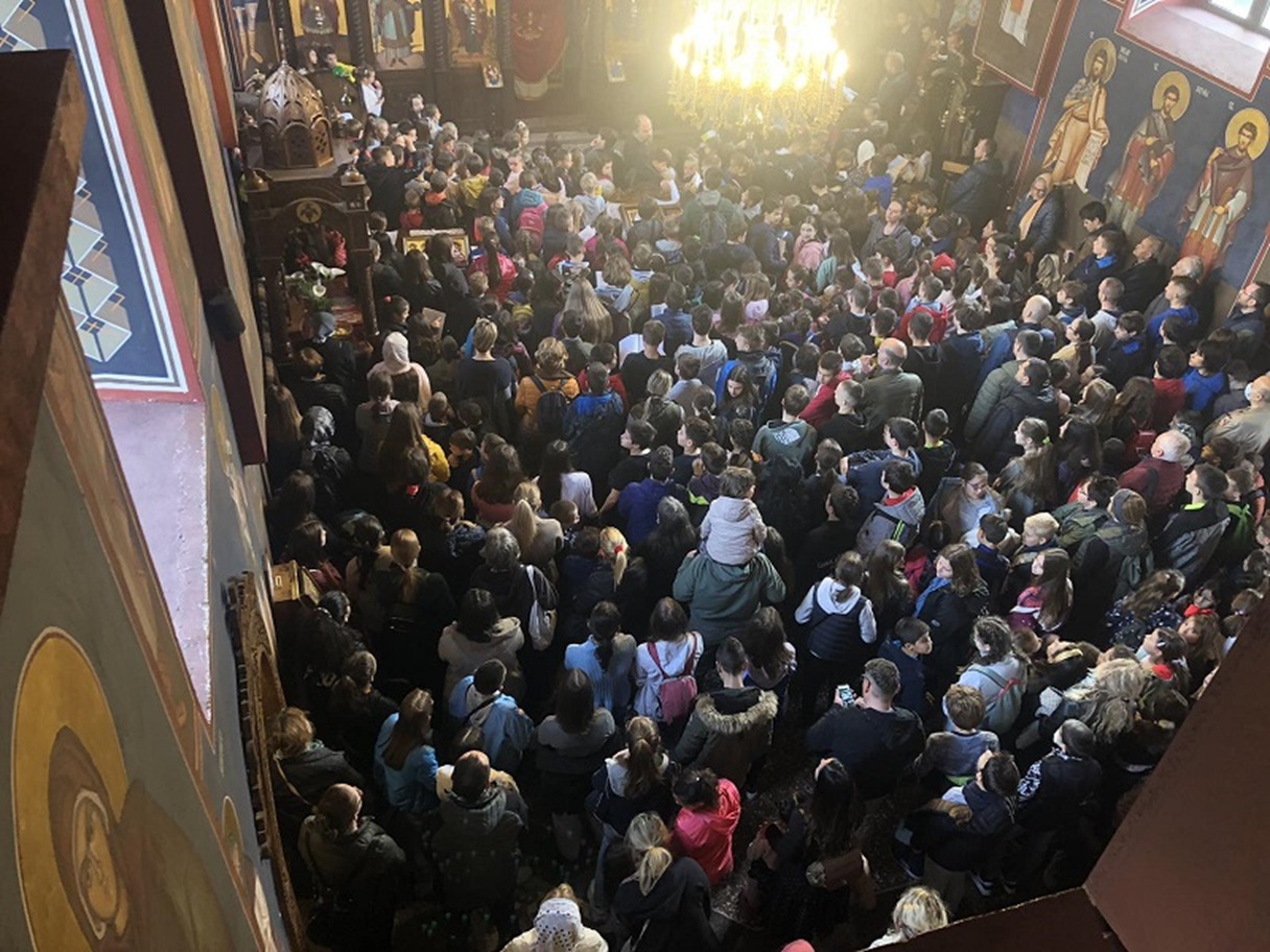 Ђаци на литургији у Храму Светог Георгија у Бежанији